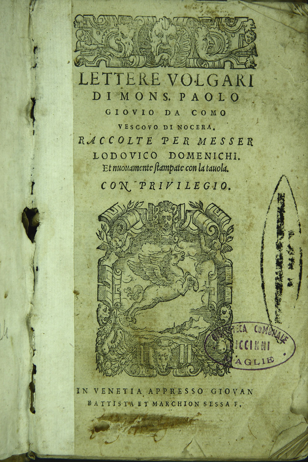 Lettere volgari di mons. Paolo Giouio da Como vescovo di Nocera. Raccolte per messer Lodouico Domenichi