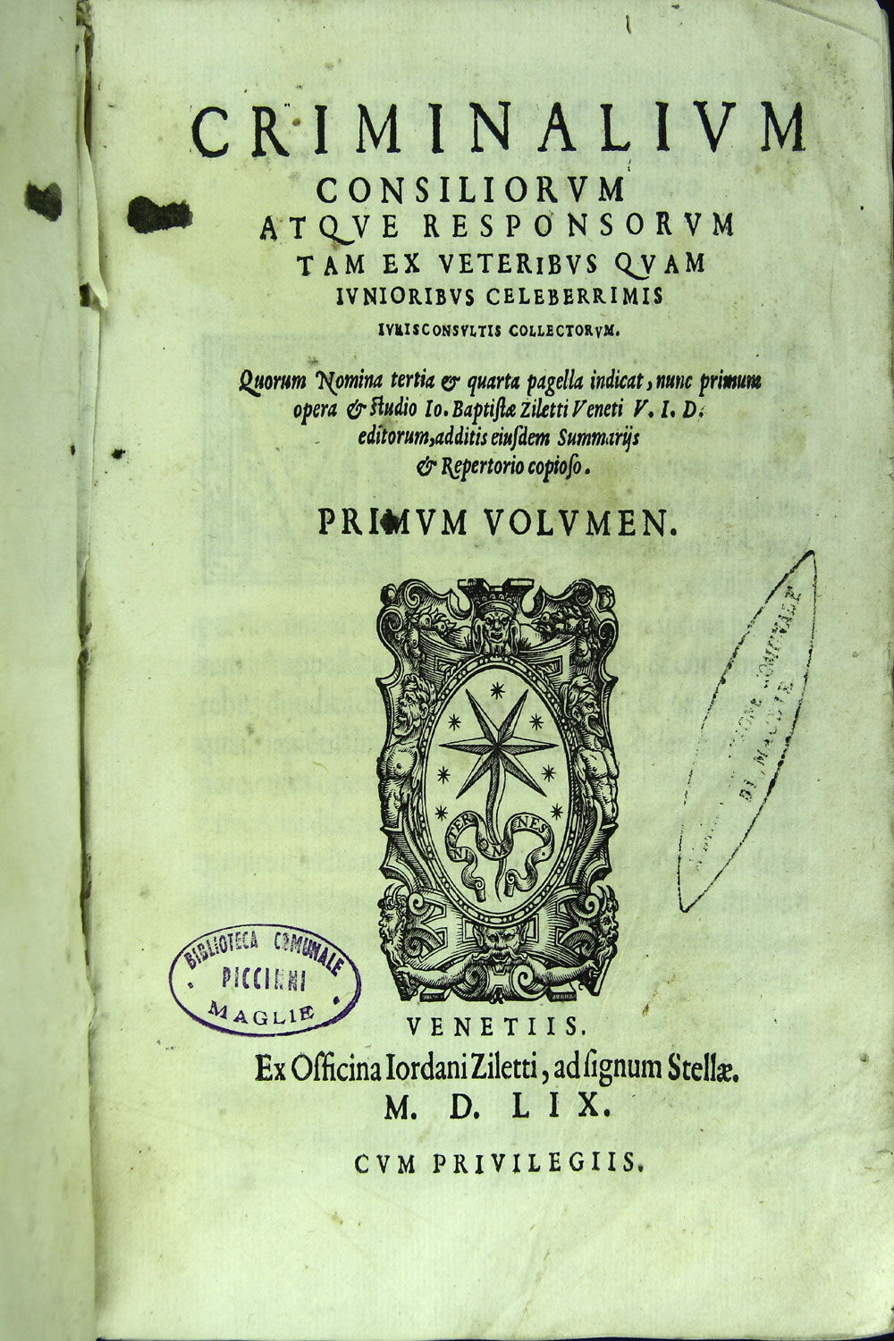 Criminalium consiliorum atque responsorum tam ex veteribus quam iunioribus celeberrimis iurisconsultis collectorum